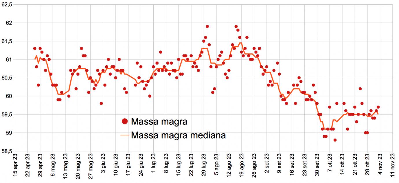 Buongiorno. Consueto aggiornamento settimanale dei grafici. Peso: Percentuale di grasso: Massa magra: Buona domenica a tutti.