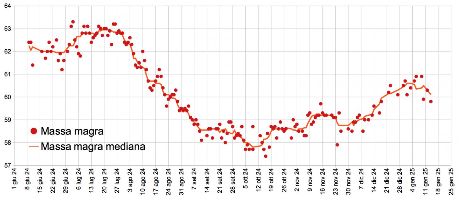 Buonasera. Aggiornamento dei grafici. Peso: Percentuale di grasso: Massa magra: Buona serata a tutti.