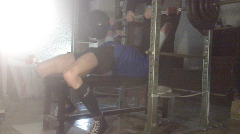 Panca, riscaldato raw fino a 90kg poi ho messo la maglia da panca Katana e ho fatto