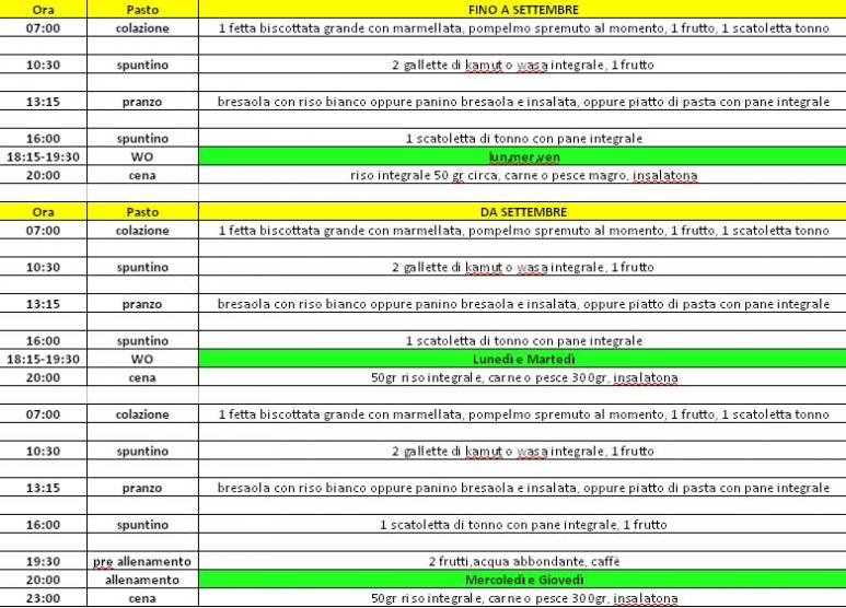 Al ritorno dall' allenamento sia di football e di pesi: 50 gr carbo, pane pasta riso patate e proteine (qui un 300 gr carne o pollo- 400 gr pesce) e verdura...