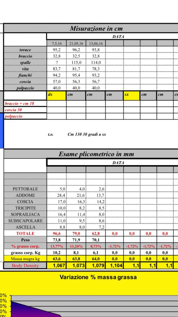 Non appena ho un'attimo inserisco le due plicometrie e foto.