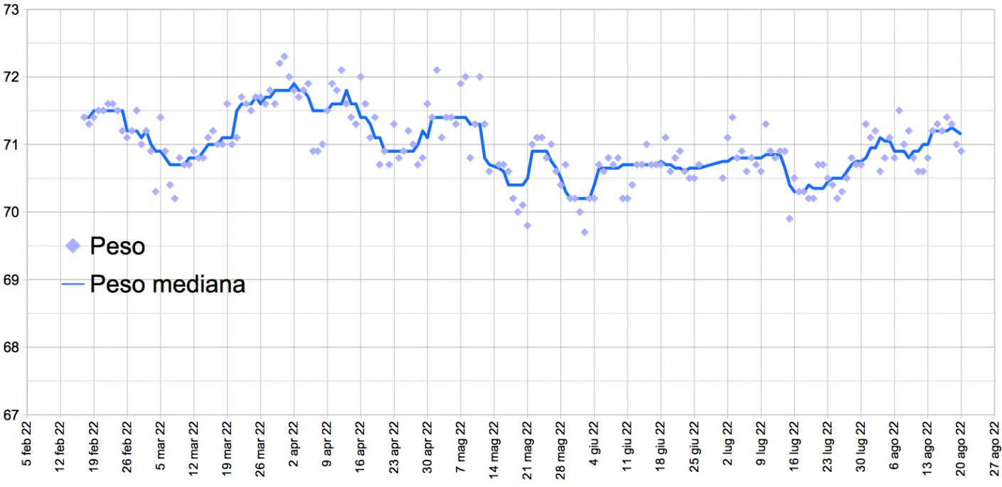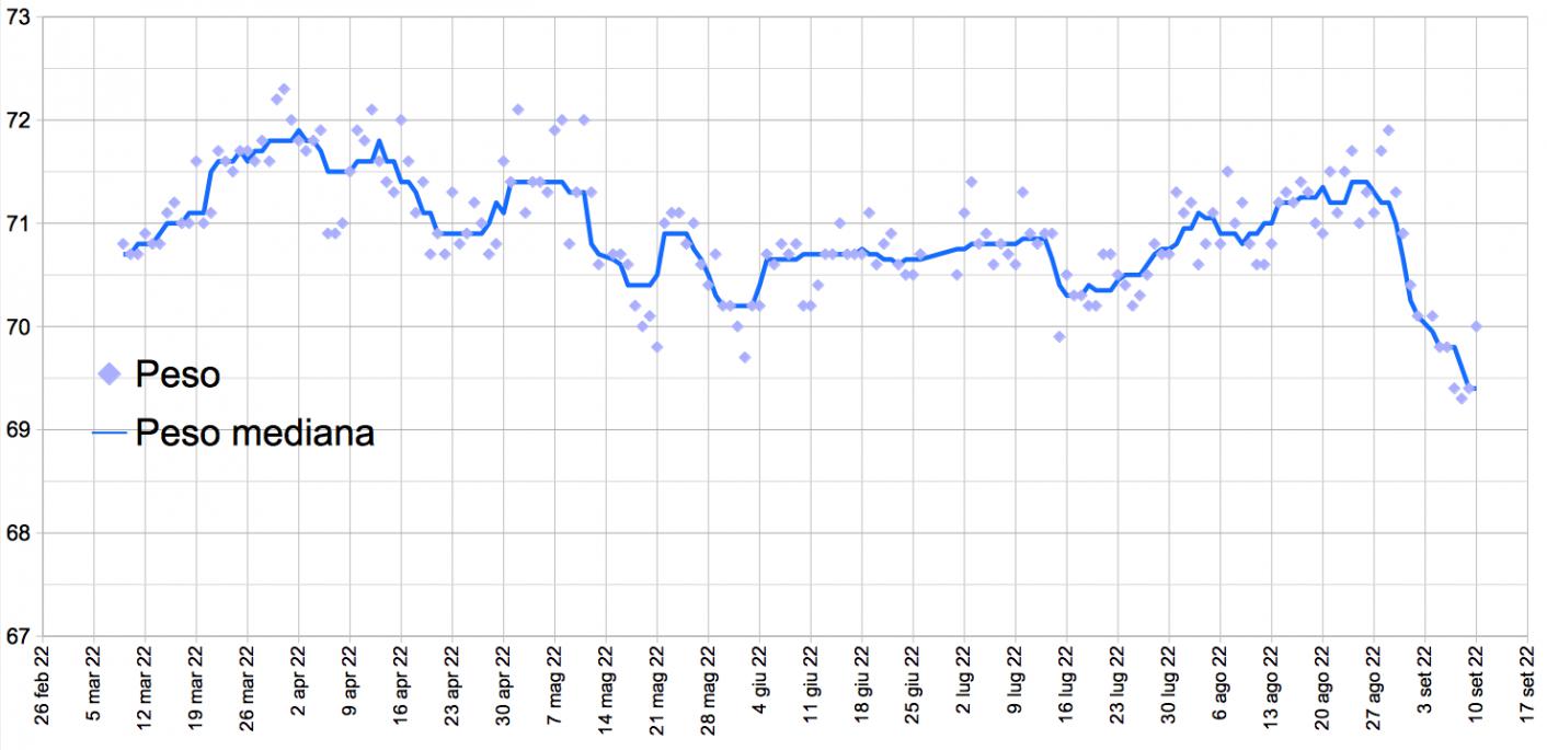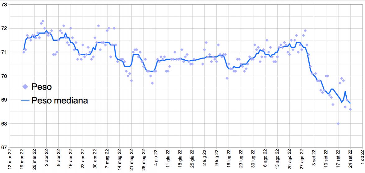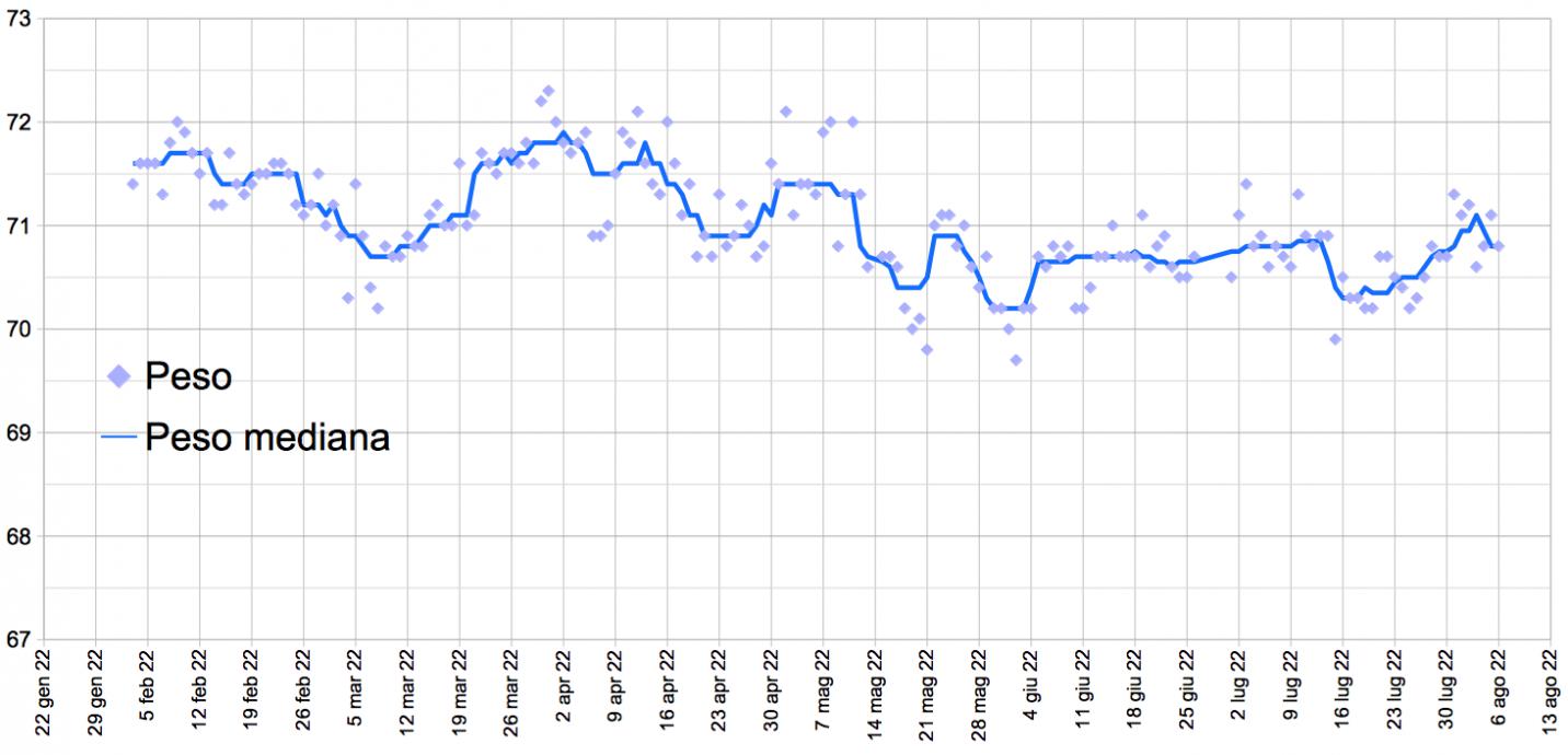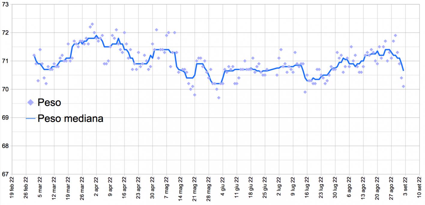 Poi penso di inserire anche gli aggiornamenti delle pesate, che continuo a fare tutti i giorni, ma li aggiornerò qui al massimo ogni settimana, magari la domenica o giù di lì.
