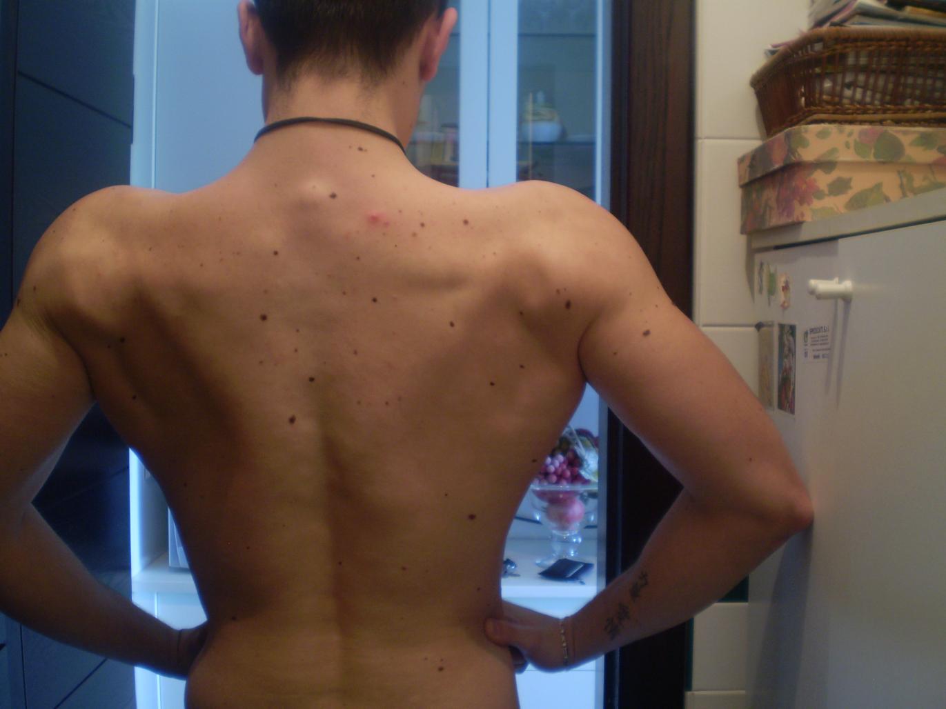 Petto uguale a prima, dorsale inesistente, addominale uguale a prima, gambe normalissime (bisognerebbe vedere come erano prima). L'unico punto in cui sei cresciuto molto sono le braccia. Se vuoi un consiglio concentrati su tutto il resto del corpo, anche perchè la sproporzione inizia a essere evidente.
