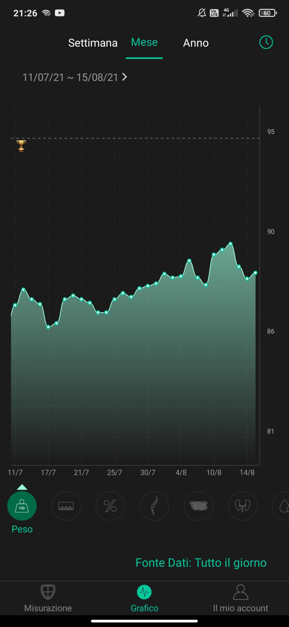 Andamento peso ultimo mese