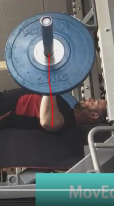 Il problema non è nella triettoria del bilanciere, ma nella posizione in cui ti trovi al petto, se il gomito, quando sei al petto è oltre il bilanciere la spinta è meno efficace e a carichi massimali può portarti a fallire.