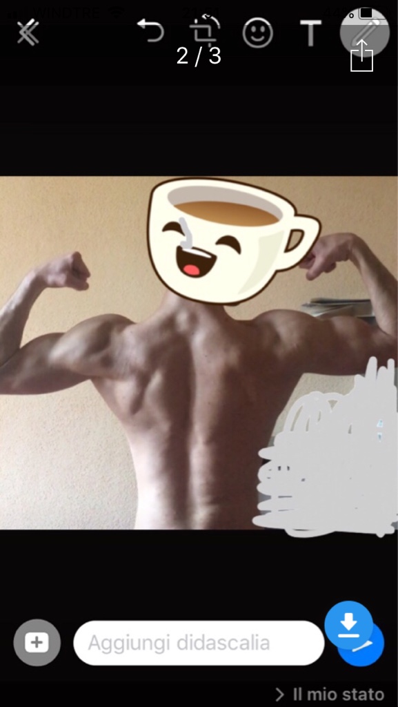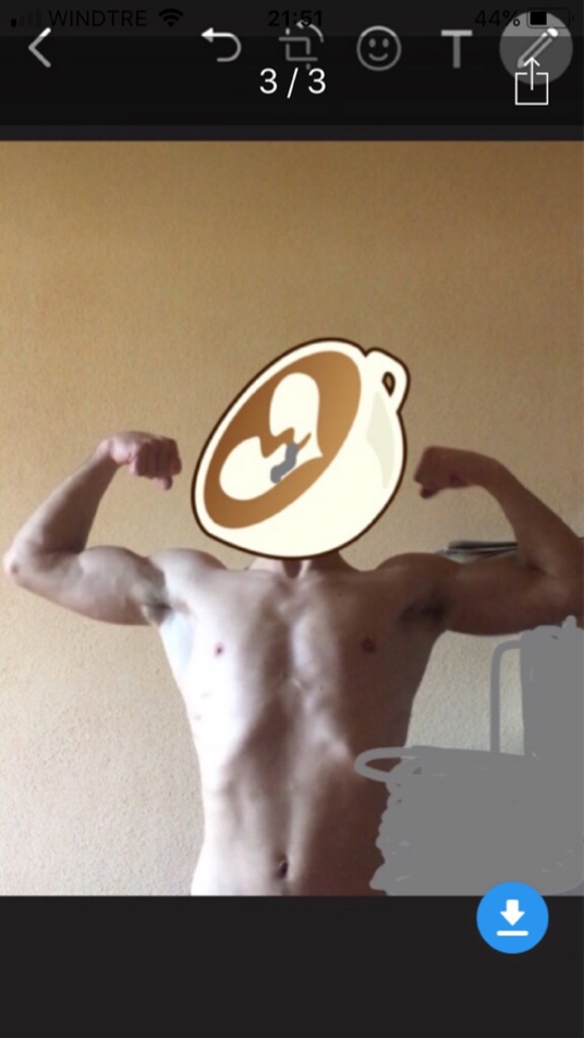 Il mio obbiettivo?? Beh... io aspiro al fisico di un membro del gruppo... che è Ghost86 ma raggiungere già la metà di ciò che ha raggiunto lui mi renderebbe felicissimo [emoji33][emoji7] oltretutto ho visto che ha la mia stessa altezza quindi...già mi faccio i film [emoji23]
