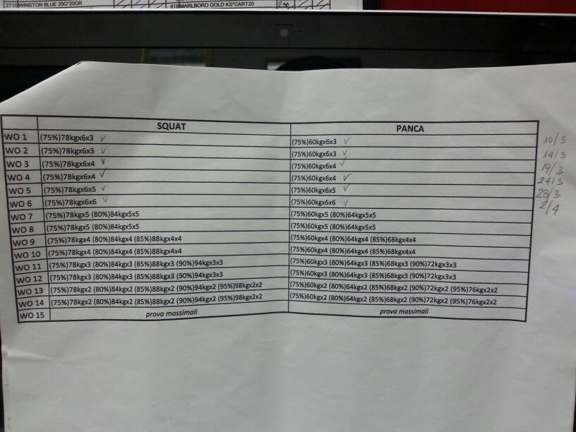 In attesa dell'imminente arrivo del libro di Ado Gruzza (siiiiiiiiiiiiiii!!!) ieri prove sui massimali, mai fatte prima almeno così seriamente e sull'1RM! forza Ale!!!