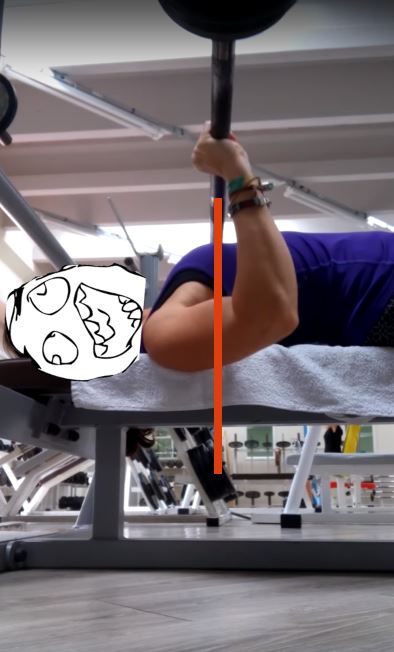 Per la panca la prospettiva non è ideale, ma effettivamente i gomiti non sono sotto il bilanciere mentre dovrebbero esserci.