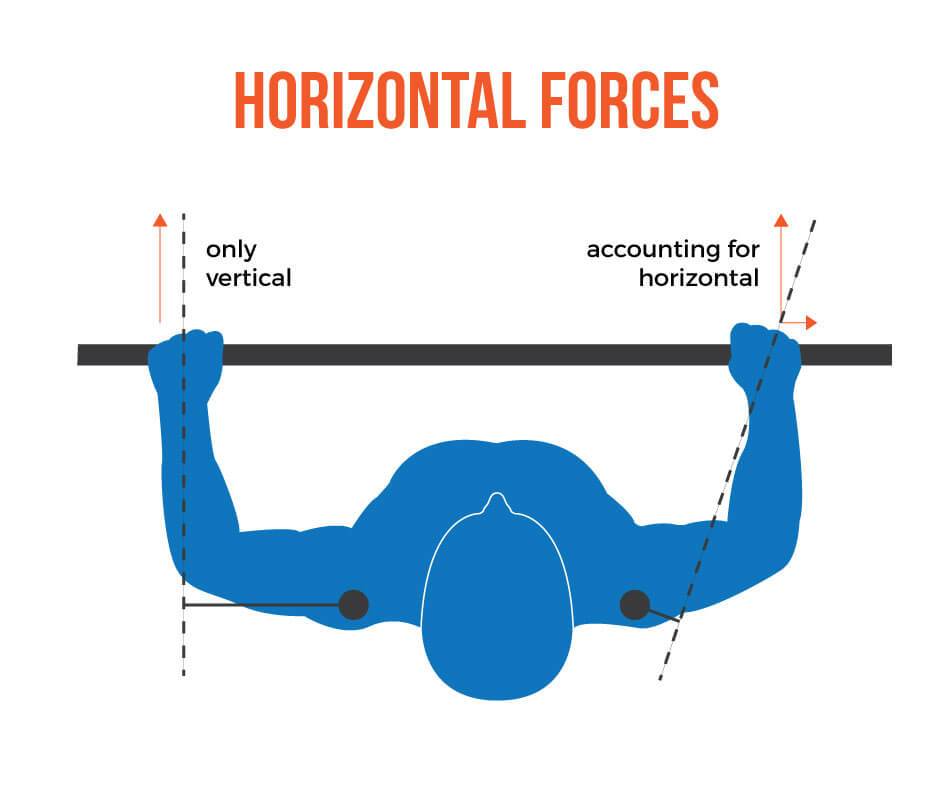 Con una presa stressa, per mantenere i gomiti sotto il bilanciere, il punto di contatto sarà sotto la linea dei sotto la linea dei capezzoli.