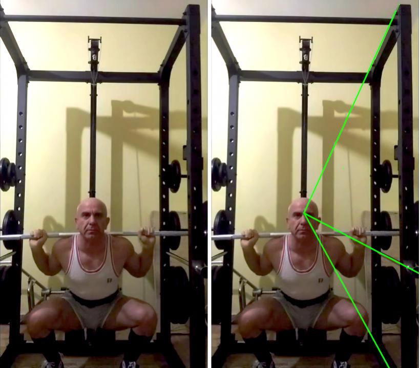 Squat: seconda serie da 6 meglio della prima. Le 3 controllate sono veramente belle da vedere, le 3 normali mi sembrano troppo poco controllate e si vedono delle oscillazioni che nelle prime tre ripetizioni non ci sono.