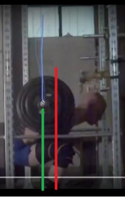 Purtroppo l' imquadratura è un po alta e non si vedono i piedi, ma sicuramente nella prima alzata il carico era abbastanza centrato, altrimenti la traiettoria non sarebbe così rettilinea; nella seconda alzata invece comincio la discesa sbagliando, con il peso sui talloni, infatti scendendo devo spostare il bilanciere più in avanti altrimenti sarei volato all' indietro.