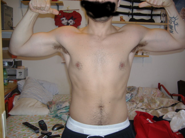 ciao a tutti è volevo mettere alcune foto le prime di circa un mese e mezzo fa e le seconde di oggi premetto che sono alle prime armi anke se in passato ho gia praticato palestra è solo da 1mese e mezzo che mi sono iscritto in una seria e che sto cercando anke di mangiare un po meglio vi dico anke i miei dati ho 25 anni sono 170 e peso 65 kg la mia alimentazione prima di iniziare era praticamente a base di pizza dato che la carne nn la mangio praticamente mai ora mi sto impegnando con uova tonno grana ecc a integrare un po di proteine alla mia alimentazione e di taglare un po i carbo e i grassi va be lo so è passato poco da quando ho iniziato ma cosi con le foto man mano mi riusciro a rendere conto se sto ottenendo qualke risultato