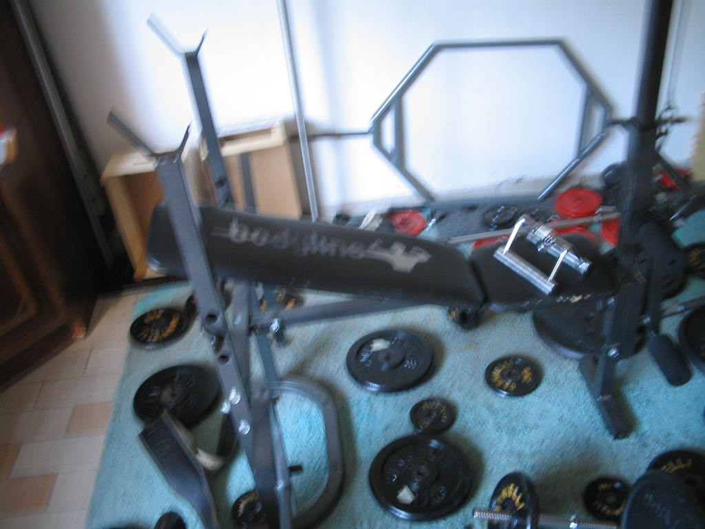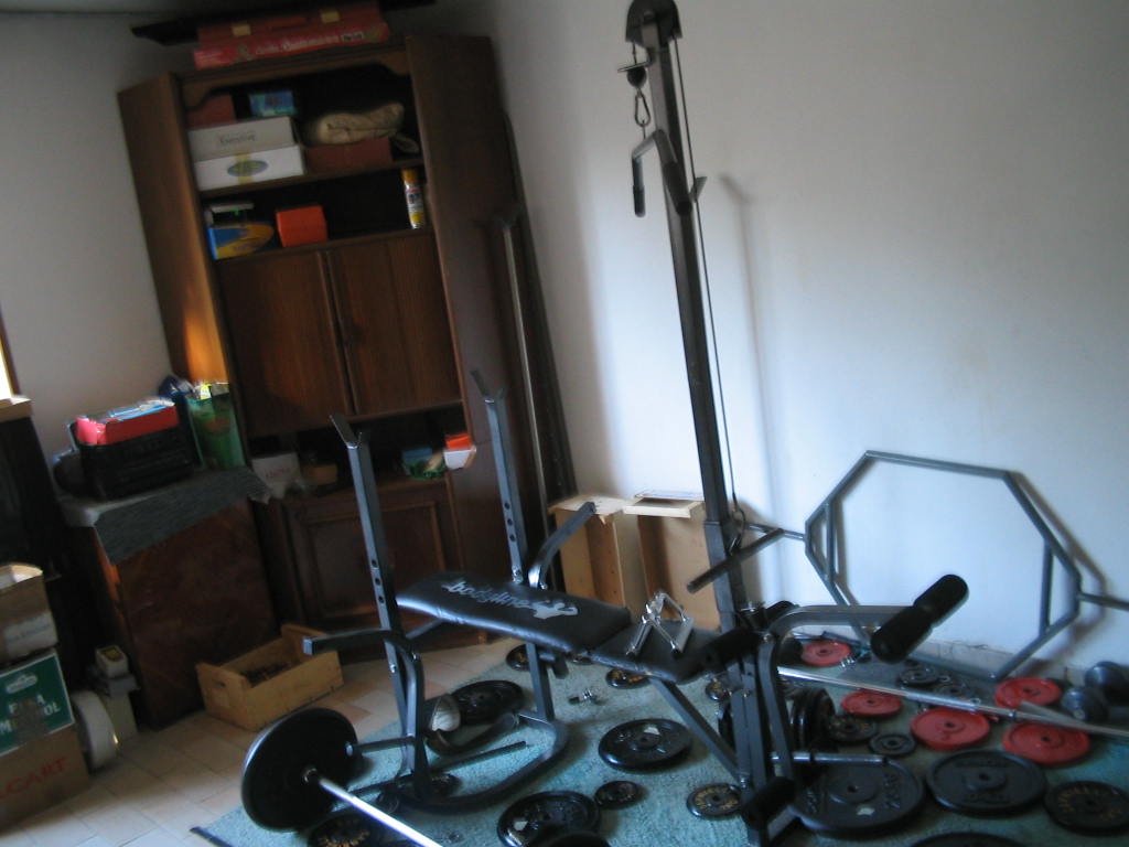 Vendo, come da titolo, una panca con reggibilanciere incorporato provvista anche di torretta lat machine e postazione leg extension/leg curl , con anche il triangolo per la lat machine e anche il bilanciere di 150cm il tutto a 70 euro. Zona como-milano-lecco e solo ritiro, non spedisco. Il reggibilanciere l'ho testato fino a 110kg e regge molto bene, la lat machine fino a 80kg e reggeva bene, la postazione leg curl/extension fino a 70kge reggeva bene. In piu la panca e anche inclinabile a 3 livelli. Soltanto la stoffa e un pochettino tolta in qualche parte ma, a parte questo( che comunque riguarda l'estetica e basta) e in perfette condizioni. Ecco di seguito le foto( il resto che vedete nelle foto a parte panca e bilanciere e triangolo non e in vendita ehehee).