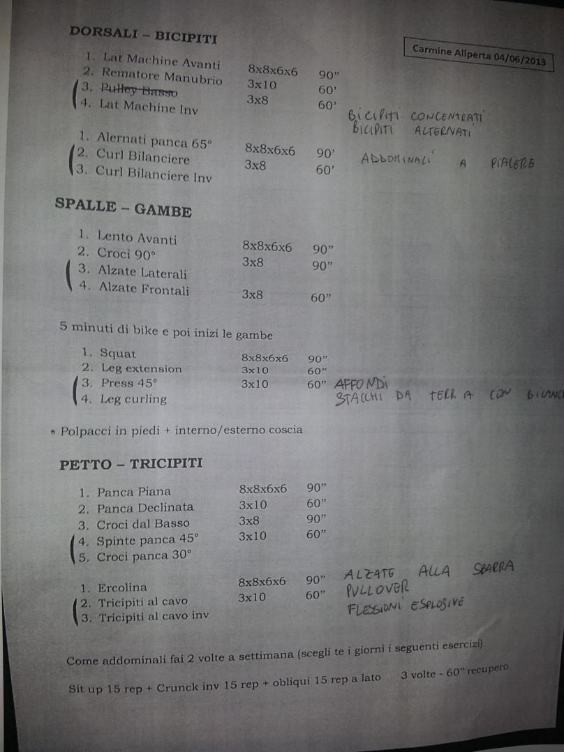 salve questa scheda e fatta da un personal trainer pero alcuni esercizi a casa non posso farli perche mi mancano alcuni attrezzi allora ho sostituito con i miei scritti a penna affianco che ne pensate Clicca l'immagine per ingrandirla.