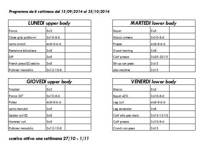 Ciao amici, vi presento la mia programmazione per questo anno che verrà, alternerò le 3 schede durante tutto l'anno, ogni scheda ha durata di 6 settimane, alla fine di ogni 6 settimane farò una settimana di scarico attivo, obiettivo ipertrofia, quest'anno è il mio terzo di allenamenti, consigli? per chi non lo sapesse sono un ex obeso, durante l'ultimo anno ho raggiunto quasi la forma fisica alla quale aspiravo, età 32, 169cm per 77kg. CIAUUUUUUUU