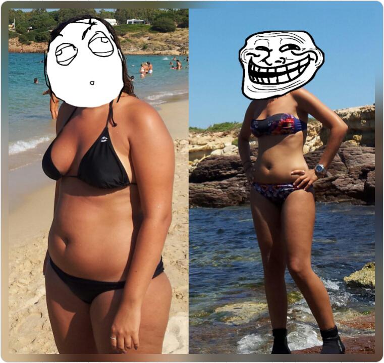 In 9 mesi son passata da 77kg a 60kg (sono alta 1.65 e ad oggi peso precisamente 63kg) facendo ellittica (min 1ora al giorno 5vv a settimana) e un pochino di pesi.